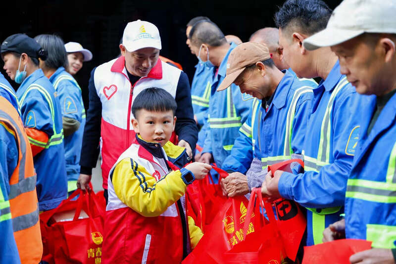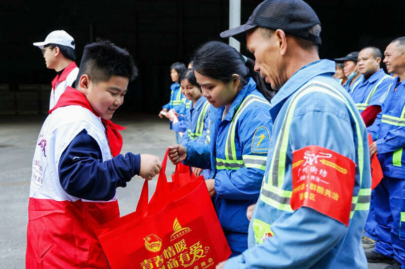 广东省青年商会秘书长陈丽介绍,在爱心青年企业家会员们的支持下,“青春情暖·感谢有你”致敬留粤坚守岗位青年环卫工人公益活动已经开展了12年,至今累计为数万名环卫工人送去了温暖与关怀,该活动已成为广东省青年商会的特色品牌项目。从青年企业家个人参与扩展到“亲子守卫队”,再到今年组建少先队小队,公益理念不断传承。